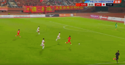 第17分钟,U16国足快速反击,帅惟浩右路横传,万项禁区线停球之后右脚斜射稍稍偏出。